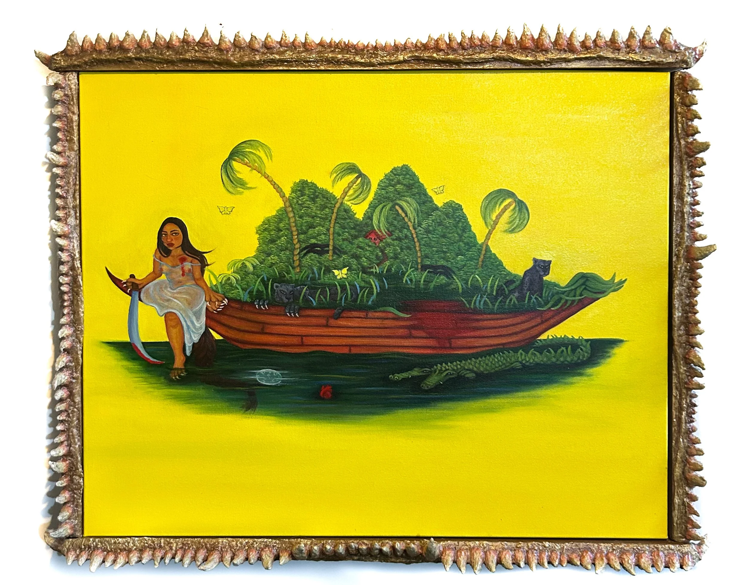 Oil Painting on Canvas, Paper Mache & Hemp Fiber sculpture frame